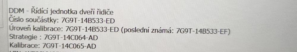Jsem to blbě napsal, Potřeboval jsem kalibrační soubory 7G9T-14B533-EF. Ale pravda, asi se na automatické sklápění vyprdnu uplně, stejně bych to za chvilku zase vypínal kvuli mrazu. Zustanu asi u manualního tlačítka. Navíc bych musel vyměnit zadní moduly.