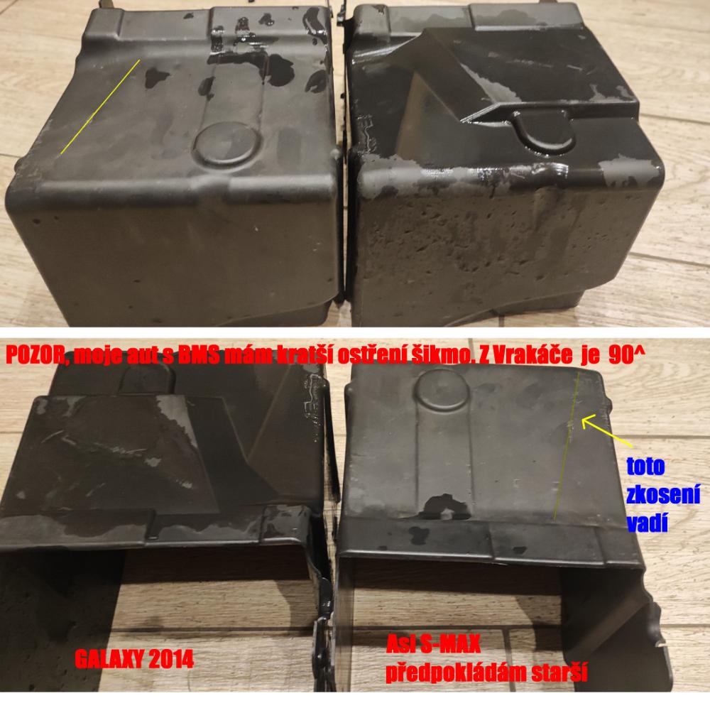 To zkosení (naznačeno žlutě) je k nepochpení. Mísa je tam dost, aby se vešlo i bez něho. Zvednou o 2cm je blobost, to se fakt asi nevejde. Ale zde to naříznout , něčím spojit jako opravu nárazníku a zaetovat platovou pájecí pistolí by de mého bylo řešení. Ten nový je vyšší z důvodu toho kostření přímo. To asi nebude , že lepší startování, ale spíče levnější kabel s méně mědí.