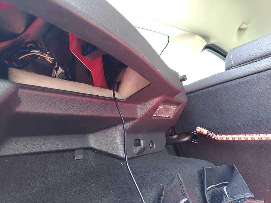 - povolil jsem dva šrouby na levé straně kufru platu u světla interiéru a malinkato povycvaknul. Pak šel kabel prostrčit.