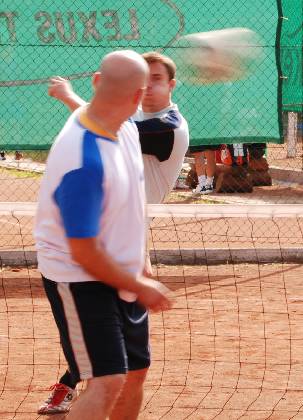 Jak dokazuje fotka, Beris a PedroH byli tak sportovne vytizeni, ze klidne u nohejbalu stacili sledovat, jak pristavaji letadla do Mosnova.