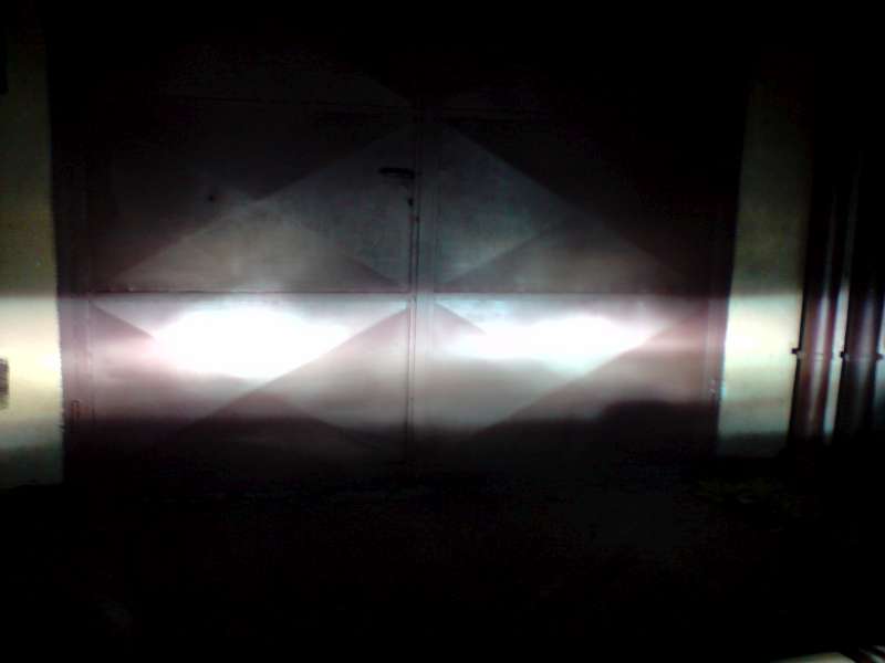 2 kota: časem asi AE s čočkou. Dneska ráno jsem v 5/30 jel do práce, čili ještě tma a super viditelnost. Nikdo na mě zatím neblikal, potkal jsem i 2 policejní hlídky 8O a taky nic...uff :wink: (nezastavili mě). Přikládám i foto jak to svítí. No a pokus o vyfocení výbojky :idea: