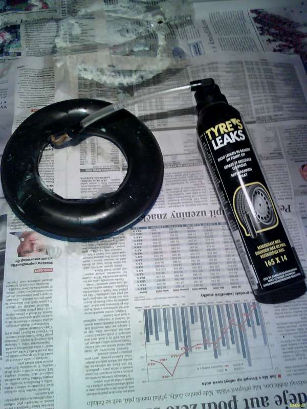 Dneska jsem vyzkoušel jeden takový opravný sprej. Píchlá duše v kolečku od vozíku a byl jsem líný lepit flek, řekl jsem si že prubnu ten opravný sprej.