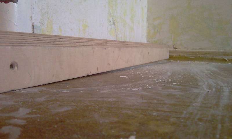 Nerovnosti jsou před rekonstrukcí, ale takhlevýrazně to je jen na dvou místech, dva hrby. Na podlahu nemůžu dát nic jiného, protože bych si zvednul podlahu a už bych se nevešel. Leda to celé vylít nivelačkou, ale to bych musel dát skoro 1,5 cm výšku a to zase vyleze do peněz