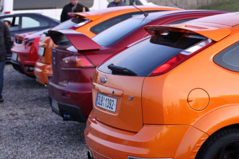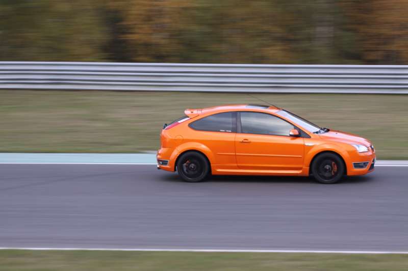 Ford Focus II 2.5T ST, 3 dv.,Electric Orange byl, je Golf GTI VII Performance Pack