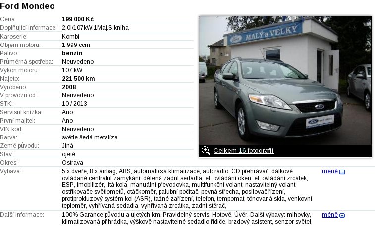No to Mondeo jsem videl, mají ho tam tuším od konce října. Byl jsem tam když ho zrovna čistili, byl jsem tam obhlížet jiné dvě v dieslu, na ty ještě nešáhli jak je složili z vleku. Myslím, že MaV je jeden z těch slušnějších bazarů v regionu, narozdíl třeba od Kučery...