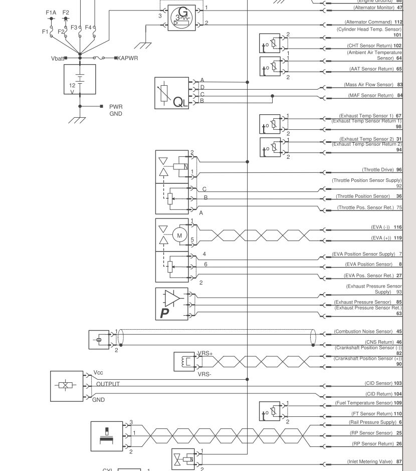 U těch elektricky ovládaných jsou 2 dráty elektromotor a 3 potenciometr snímače polohy. Na schématu je EGR označené jako EVA