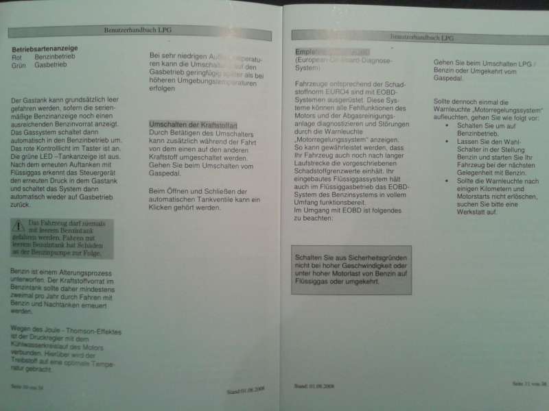 Moje skúsenosti sú zatiaľ kladné, nemám problémy so štartovaním, na plyn prepína v tieto rána pri 3-4°C po približne 500m, v lete po cca 200, cez najväčšie horúčavy prakticky okamžite. Nepodarilo sa mi ani raz postrehnúť prepnutie LPG/benzín nejkým sprievodným javom ako trhnutie a pod. Výkonovo do 3500ot/min nepostrehnuteľný rozdiel medzi palivami.
