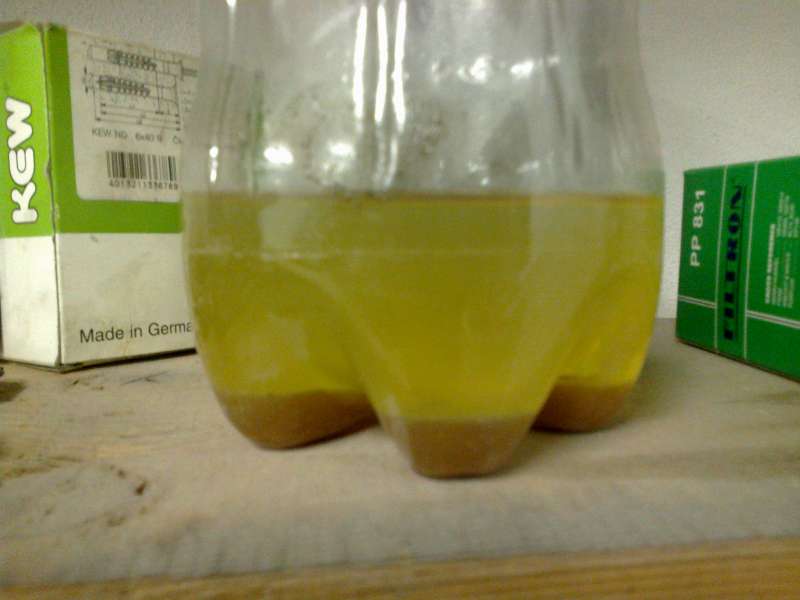 Tak jsem dnes měnil naftovej filtr, přikládám fotku co jsem z něj vylil ( je to spodek 2l petky)