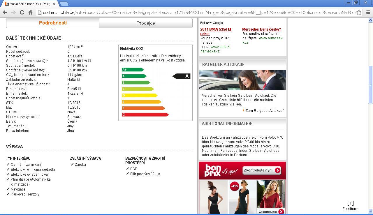 Markon:No ono to tak asi je,auto zřejmě někde stálo,asi ho nemohli prodat,ale i na mobile.de psali "uplná servisní hystorie"vím,že i kdyby km seděli,tak to že auto stálo taky není dobré,ale jestli mi ho doveze(v což moc nedoufám)vezmu ho prvně do škodovky na předkupní prohlídku,když mi řeknou,že je v pohodě,tak proč ne. Jen bych ještě chtěla dodat,že jsem na hledání auta celkem už zanevřela,řeším to už cca půl roku,a výletu kdy mi auto bylo do telefonu vychváleno,potažmo kecy tipu:proč bych Vám posílal VIN a do škodovky Vám ho nepůjčím protože bla bla bla a já nevím co ještě,jsem si taky užila,ve finále,lakované auta na 3/4,stočené kilometry a když nepočitám projeté peníze a čas za volantem,tak zjišt´uji že v Česku auto které by nemělo něco falešného koupit nejde!A to i když je to dovoz,rozdíl je akorát v tom že v zahraníčí jsou auta lépe servisována-protože na to jsou peníze a nebo(Německo)lepší silnice-dálnice.Možná Vám to připadnoujako bláboli co píšu je to tak,vždycky se na auto těším a výsledek je stejný.. :wallbash: