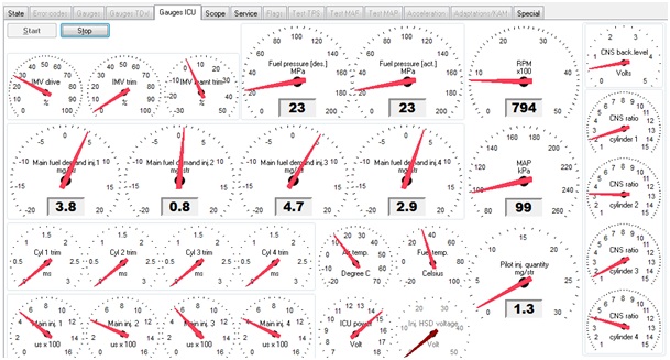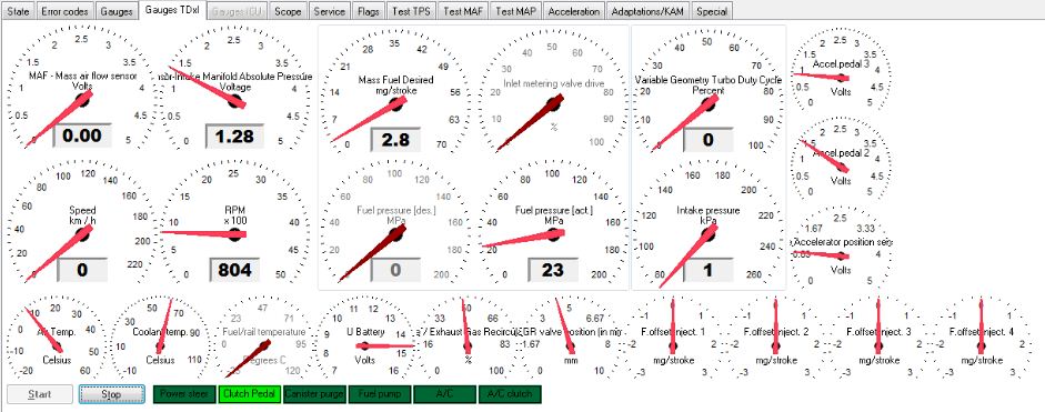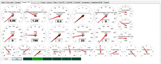 Pred vykonanim prepadoveho testu vyzerali budiky na diagnostike takto: