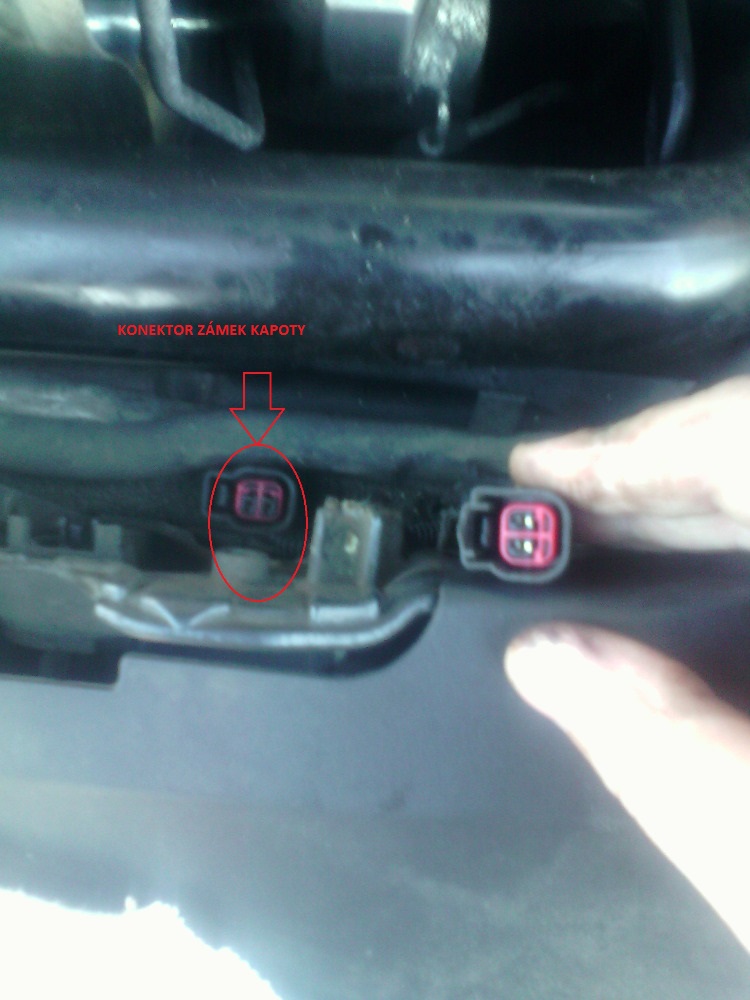 Ahoj u zámku kapoty je jeden neznámý konektor drát bílý hnědý nevíte co to může být