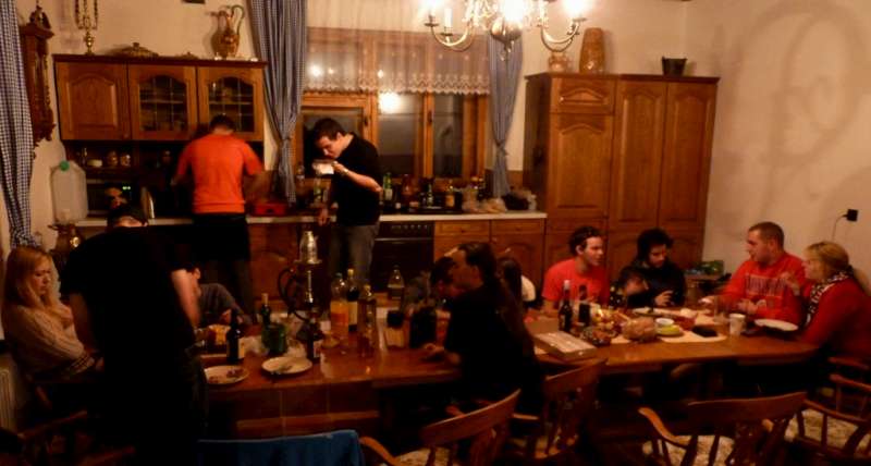 Jsme na místě, cesta supr. Celkový počet na chatě je 14 ks. Marťas dorazil s rOmíkem jako poslední, všude je sníh a 7 stupňů.