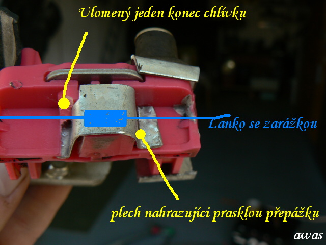 Napříč všem předpokladům o beznadějnosti opravy stahovacího mechanismu jsem se dal dnes do tuhýho boje.Bohužel nemám skoro žádný fotky poněvadž sem nedoufal v úspěch,nicméně kvalitní fota pokud jde o montáž a demontáž stahovačky jako takový sem dodal KOTA a foto jednoho opravovanýho dílu mám.Předem upozorňuji,že je jsem dělal z věcí co dům dá a estetické stránky věci nedbaje.