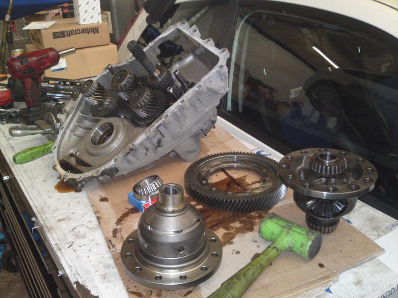 Par foteček rozebrané převodovky při výměně diferáku. Sám doma v garáži bych to asi nedělal.