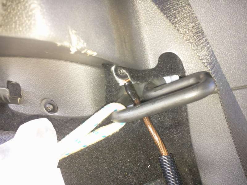 Kabel cinch mám taky tažený u spolujezdce, a zem mám právě zapojenou pod tím držákem vzadu, jen ho odšroubuješ jeden šroub a dáš pod něj kabel s očkem a je to.