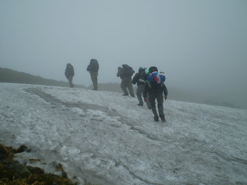 )jsme se občas ztráceli a Hoverlu si pletli.Nakonec se to ale podařilo.Ten výstup na ní šel,ale sestup dal na kolena zabrat.Přeci jen ty bágly vážili kolem 20kg.Nejvíc naštvanej jsem byl z toho,jak jsem se vydrápal na Hoverlu v ponču,zabalenej do těch termoprádel a nahoře pobíhali děti v tričkách a sandálích.Měli jste to tam taky?Oni tam jezdí se školou z druhé strany a to je asi pohoda...