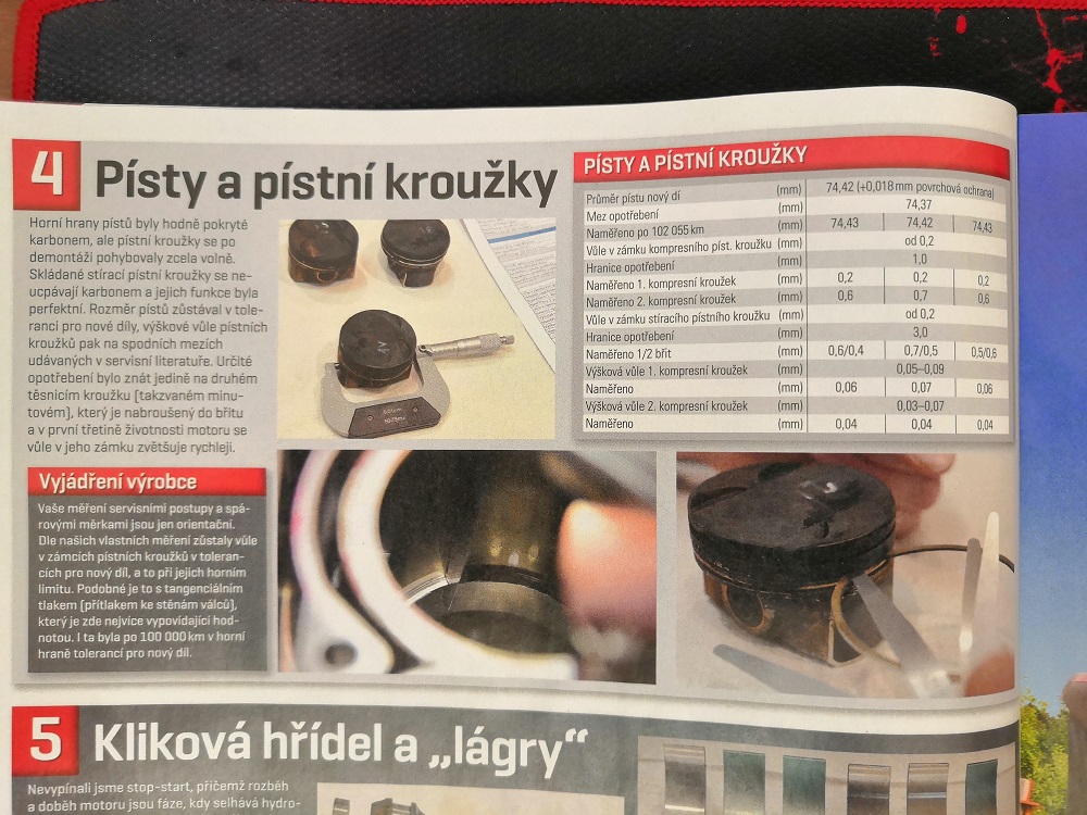 Nový píst na prvním válci má d74,42 A opotřebený po 100 tisících d 74,43, to má asi ovnovitelnou schopnost.