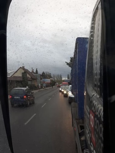 Tady jsem si to vyfotil proto, že páté auto za mnou (červená dodávka), stojí vedle cedule velké jako kráva, ať vytváříme záchranářskou uličku. Ale je to stále marné.