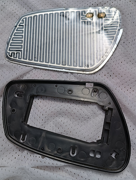 Takže jsem na origo držák pomocí oboustranné nano lepenky (2 vrstvy) přilepil náhradu, tedy zrcadlo, fólii i plast. rámeček. Tím se náhrada nevešla do původního plastu, protože ten plast po obvodu přesahuje sklo. Proto 2 vrstvy (asi 2 mm. totál). Na poslední fotce je vidět tu lepenku. Drží to dobře, jen nemám vyřešeno vyhřívání, protože náhrada má konektor v místě, kde má originál úchyt na "tyčku" která vede k motorku. Na autě to není prakticky poznat. Zabralo to asi 30 min.