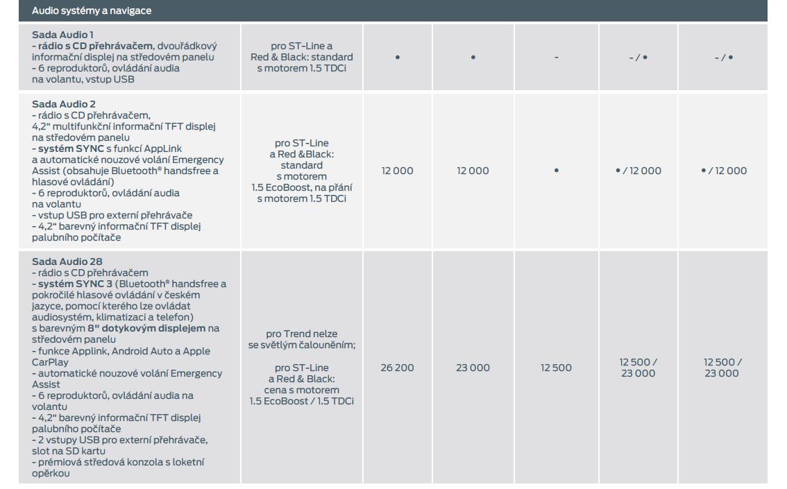 - systém SYNC 3: Bluetooth® handsfree a pokročilé hlasové ovládání v českém jazyce, pomocí kterého lze ovládat navigaci, audiosystém, klimatizaci a telefon
