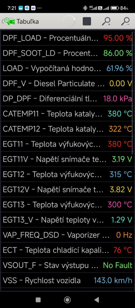 Podmienky idealne ,jazda po diaľnici dpf plny ale teplota neprekročila 500 stupnov, proste pri cca 470 prestala stúpať napriek tomu zebsom šiel 150km/h