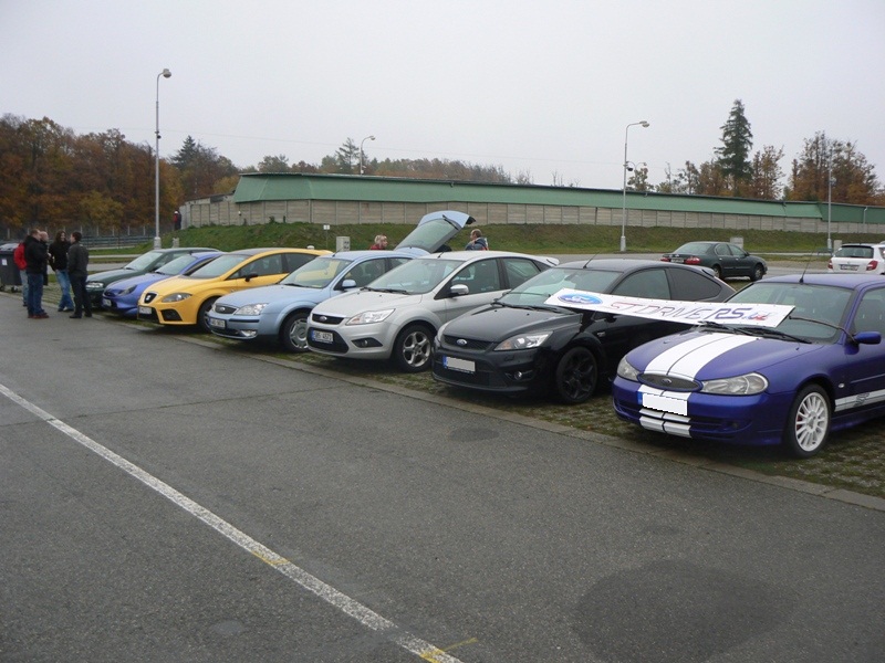 Auta - magoři s foukanou škodovkou, slicky... na 4 a 5 to hrabalo, nemohl se skoro rozjet, ve druhém kole vystřelilo víčko od koleje a konec, buď kroužky, nebo díra v pístu. Spousta BMW, báli se jezdit rychle :) Oranžový ST jsem viděl jedno, nějaký MX-5, S2000, Golf R32, jedna Škoda 110R, dvě stodvacítky, pár Subaru, nějaký EVO, AMG a tak, moc jsem nekoukal, pořád jsem byl u auta a vyhrabával jsem z něj šutry, leots krizovek jaxviň, jednou kačírek v šikaně za rovinkou, dvakrát jsem tu šikanu probrzdil, tak jsem to projel rovně, jednou jsem to málem střelil do začátku zdi, co je mezi rovinkou a boxy, zůstali jsme stát asi metr od ní (ujelo předemnou nějaký BMW, noha z plynu na dvojce a už se to vzadu vezlo bokem), jednou jsem vyletěl někde okolo pátý věže, jednou se mi to rozhádalo za zatáčkou a to se mi zázrakem a díky převařeným ramenům (řízení se do přímého směru vrací o mnoho rychleji) podařilo srovnat. Časy jsem ještě nepočítal, kopíruju karty, jedna mi nějak zlobí, tak uvidíme.