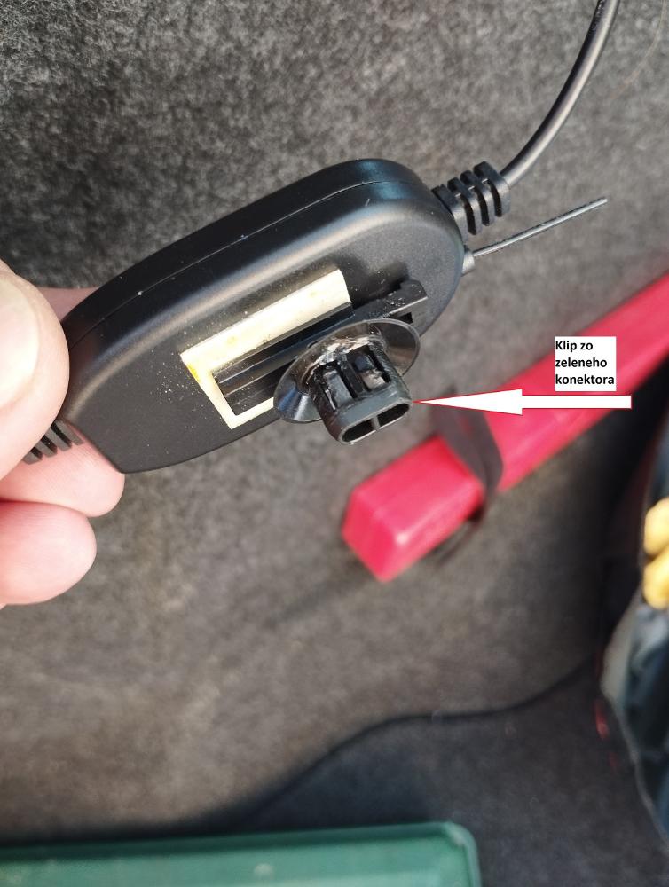 Mam hatchback a tak som zvolil moznost pripojenia cez zeleny konektor, ktory som mal v kufri. Povodne som planoval zapojit priamo na APIM ale na zeleny konektor mi to prislo jednoduchsie a hlavne ak by nieco zlyhalo aby som si neodpalil celu jednotku. Zeleny konektor som odstrihol a spojenie kablov som realizoval zmrstovacimi buzirkami s cinom, kde mi stacili dve velkosti, biele na video kable a cervene 2,4 mm na kable s napetim a kostrou. Schema zapojenia po odstrihnuti zeleneho konektora a po odstrihnuti CINCH video konektora : Na kamere boli dostatocne dlhe kable k cuvaciemu svetlu. Kable ku svetlu som taktiez natvrdo prestrihol asi cca 10 cm od konektoru a spojil s kablami napajania kamery cervenymi buzirkami a este prelepil aj izolacnou paskou. Treba si pre istotu odmerat kde je +12V a kde kostra. V mojom pripade : WiFi transmitter som pripevnil elektrikarskou stahovacou paskou a este prelepil izolackou. WiFi receiver som prilepil obojstrannou paskou na povodny klip so zeleneho konektora a zacvakol na miesto kde bol zeleny konektor. Forscan-om som povolil kameru. A takto vyzera vyhlad z kamery, chybaju parkovacie ciary ale bohuzial Cina, v popise boli ale v realite nie. Vyhlad z kamery spolu so zadnymi senzormi. Prenos obrazu cez WiFi na screen radia je po zaradeni spiatocky minimalne oneskoreny (odhadom cca 0,3 s). Montaz mi trvala cca 5 hod ale minimalne o hodinu menej kvoli neproduktivnemu casu ( cigareta, WC , vahanie ci kable strihat alebo iba odblankovat, vypadnutemu klipu zo zadnej listy a zisteniu ze chyba az po nasadeni atd a pod.) Mne bolo lepsie, ze vdaka pomoci svagra som tom mal jednoduchsie, pretoze obcas som potreboval tri ruky.
