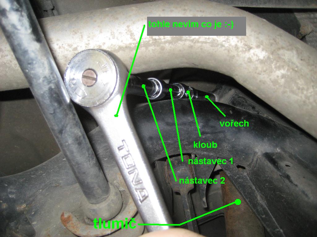 To čeho jsem se nevíc bál (povolení vršků) šlo kupodivu dost v pohodě, takový to "urvání" šroubu jsem udělal za pomocí gola sady a pak už jsem to vytočil klasickým očkem. Ztroskotal jsem ale na spodcích ke kterým je paradoxně přístup perfektní. Jak mi je totiž povolovali v servisu a pak zase utáhli, dělali to tou vzduchovou rázovou vrtačkou a já jsem ohnul dvě ty tyčky z goly a ani tak jsem to nepovolil. Hrůůůza!!!!