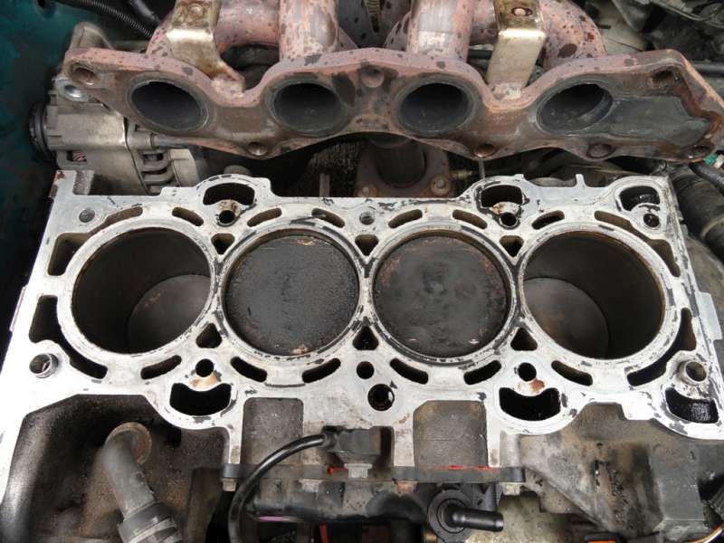 Mrkněte na fotky rozebranýho motoru, vydřenou vložku, poškozenou hlavu a spálený vstřiky: