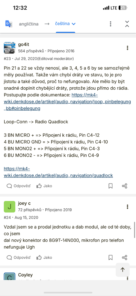 Zdravim vsechny. Mel jsem v aute SONY 6cd. Koupil jsem MCA navi, pres ELM zprovoznil bt stream, navi v converse atd. Vse jede, až na hlasove povely “voice control”. Jestli to dobre chapu, sony ma hlasove ovladani pres bt modul, ale u mca jdou hlasovy povely primo do radia. Neco sem si precetl o predelani kabelaze, hlavne prendani 4 vodicu od nekad nekam. Poradil by nekdo?