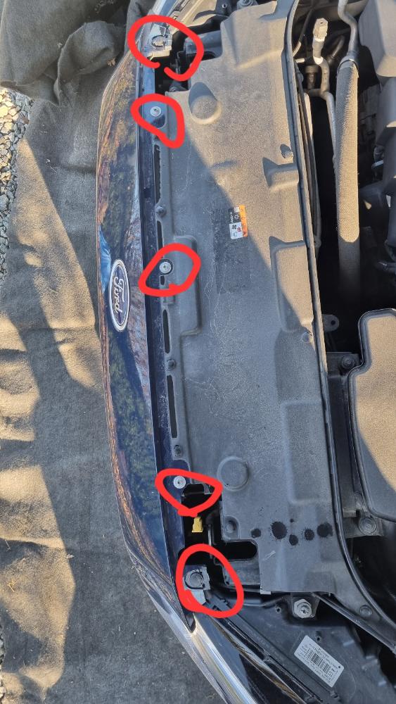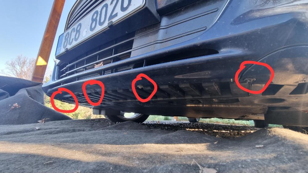 Vypíchneme dva špunty na krajích (u světla co nedemontuješ nemusíš), pak 4 menší špunty, které jsem nezakroužkoval ale jsou ve stejné úrovni co zbytek, a vyšroubujem 3x torx