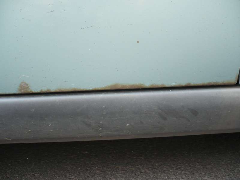 Já si přesně takhle vypadající dveře udělal sám (skoro). Koupil jsem barvu 0,5l (ale to i na nárazník), vzal flexu a odrbal až na čistý kov. Nastříkal základovkou ve spreji, pak to (nebijte mě) vzal akrylovým tmelem místo "hiousenky". Nechal jsem to asi tři dny, zase základ a pak lak... A vypadá to jako nové. Nevím na jak dlouho, ale za ty peníze (barva a stříkání) to stálo.