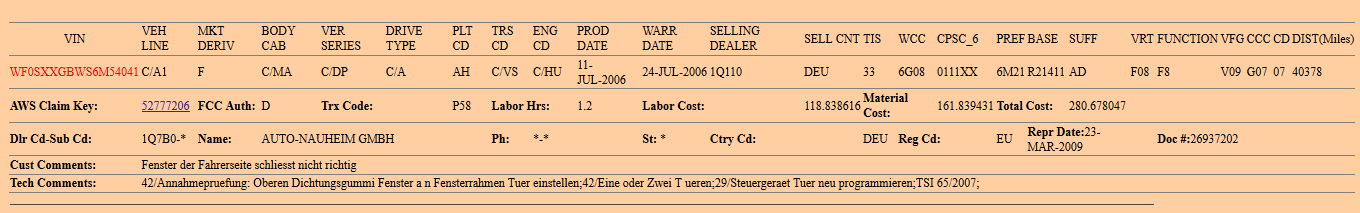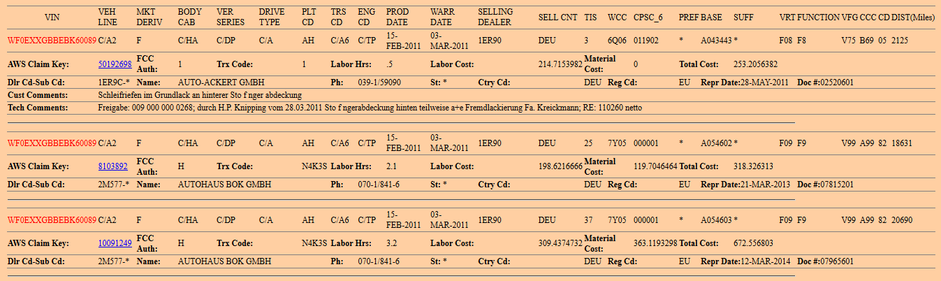 Může mi někdo dekódovat 2 záruční záznamy u tohoto Mondea? VIN: WF0GXXGBBGAY42962