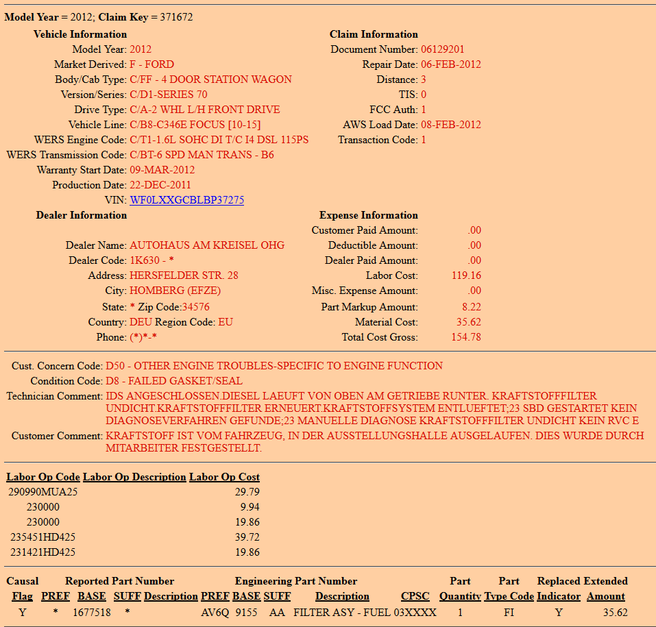 mozem poprosit vybavu a servis k WF0SXXGBWSCA70945?
