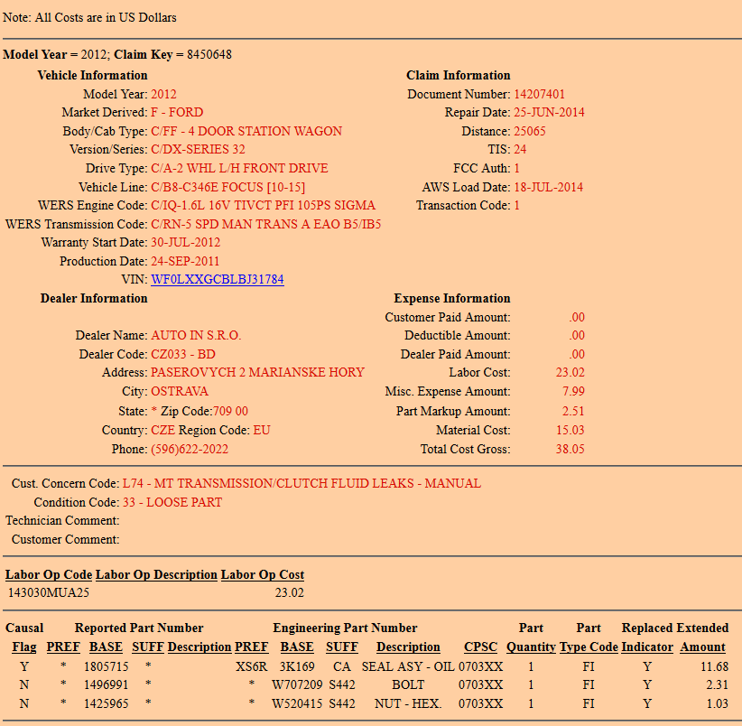 Je to naše firemní Mondeo, kteří mnozí znají. Teď je na prodej, kolega by ho chtěl a druhej kolega, kterej se o to má starat má totální mrdník v papírech a žádný záznamy o opravách....