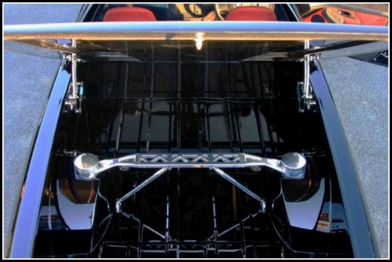 místě krytu motoru, střechy (nebo toho, co z ní zbylo) a zadního dlouhého víka.