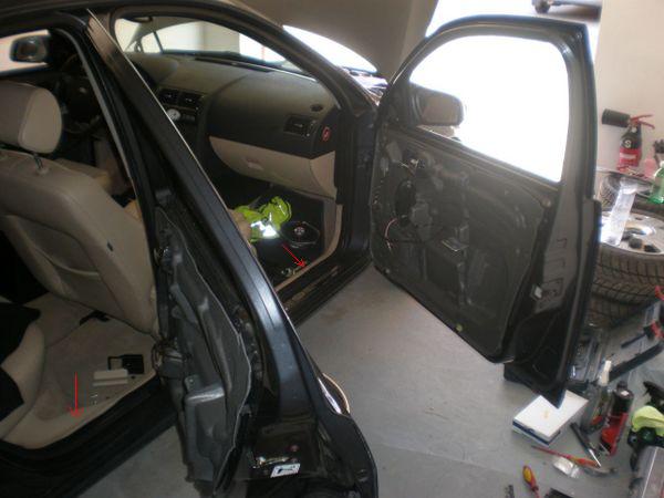 Kostru najdes v zadu. Ja som spravil novu dieru kusok od zadnych sedaciek. A vsetku kabelaz som tahal bokom auta. Daj si von vsetky plasty co by mohli zavadzat a bacha aby si to nepolamal. Potom ti budu tie plasty vyskakovat. Sipkami som naznacil kade som tahal kabelaz. Je tam dostatok miesta.