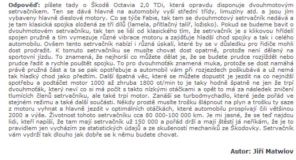 V jedné části radí, že ne sportovní jízdu, protože to ničí dvouhmotový setrvačník a končí to tím, že podtáčet motor taky ne, ale pěkně protáhnout, aby se vyčudily saze.