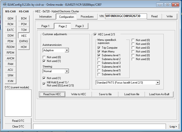Připojil jsem ELMa ke starám, printscreenoval konfiguraci. Nasadil nové, naťukal konfiguraci i VIN. S největší pravděpodobností jsem to posral