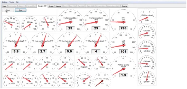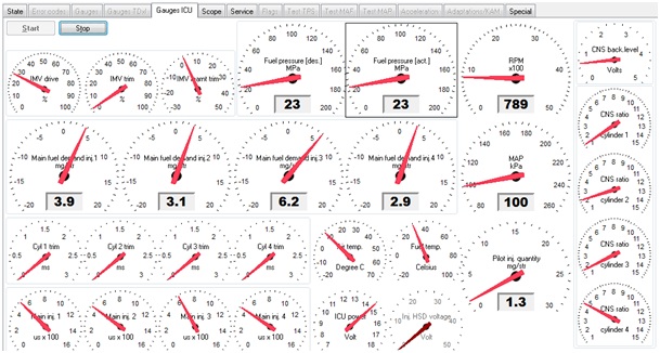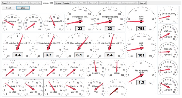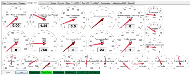 Pred vykonanim prepadoveho testu vyzerali budiky na diagnostike takto: