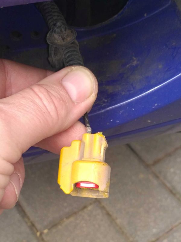 Jednoduchá porucha - nesvítí mlhovka. Kouknul jsem a příčina je zcela jasná - ulomený jeden z káblíků přímo na vstupu do kenektoru. Co s tím? Pokud by aspoň kousel lkoukal, není co řešit, ale takhle opravdu nevím.