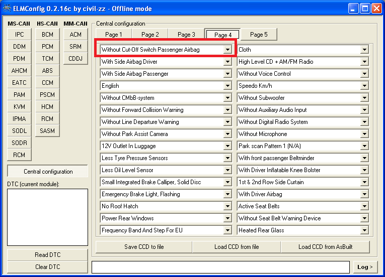 Ahoj všichni, doplnil jsem si do MK4 po FL vypínač airbagu spolujezdce a kontrolku na hlavní konzoli. V ELM jsem našel volbu pro vypínač airgagu, změnil jsem na "With.." a uložil. Nicméně se teď auto chová tak, že svítí nejen kontrolka na hlavní konzoli (nad rádiem), ale i v menu v Convers+ a to ať mám vypínač v poloze ON nebo OFF. Je ještě potřeba nastavit něco dalšího? V ELM při zvolení RCM nejsou žádné možnosti (na rozdíl od Focusu). Díky.