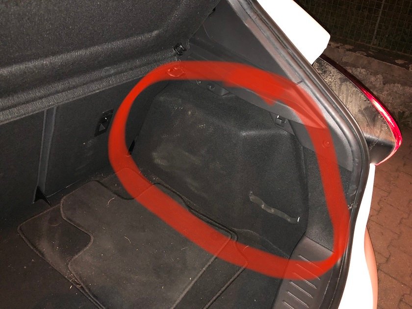 potreboval bych se dostat ke kabelazi v kufru (te, co je schovana vpravo za tim kobercovitym oblozenim), ale nejsem si jisty, jak to uvolnit, abych to nekde nezlomil nebo neroztrhl.