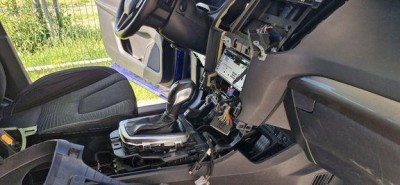 Kamera sa nachadza v strede nad SPZ, v lesklej liste. Je tam cierna plastova zaslepka, ktora sa vylupne. Lista musi ist dole. Drzi na 4 maticiach a plastovych stuploch. Treba odstrojit 5. dvere. Odporucam demontovat aj aspon jedno zo svetiel a z tej strany odcvakavat listu. Ci ma auto pripravu sa da zistit v konektore v streche. Oznaceny je na predoslom obrazku. Treba povolit stropnicu, aj na Bckovych stlpikoch, aby sa nelamala. Takto vyzeraju konektory v aute. Ak je v strednej sekcii viac vodicov, priprava tam je. Toto je protikus, konektor s kabelaze dveri. Ak auto nema kameru, v strednej sekcii je myslim 1 vodic. Kabelaz kamery ich ma 5. Velka radost, kamera osadena, po zapojeni a aktivacii kamery v APIMe....radost skoncila, nesiel obraz. Chybal prepoj do APIMu. Treba vyhadzat stredovy konzolu, nejako takto: Postup: vycvaknut pozdlzne listy po bokoch stredovej konzoly (odpredu dozadu po krajoch lesklej casti), vycvaknut listu okolo riadiacej paky, vytrhnut celu cast z leskleho plastu (nie su sroby, len cvocky, ale musia byt demontovane spominane listy), odsrobovat schranku s USB a zapalovacom (4 sroby v rohoch), uvolnit sroby na spodnej hrane panelu klimy (2 sroby) - ten ide cely dole aj s ovladanim radia a ramceku okolo obrazovky naraz, je to jeden diel. Aby sa dal strhnut, treba este vycvaknut prieduchy pri obrazovke.