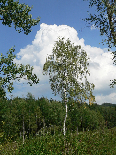 Po přivítání Bobanem jsme přemýšleli, co podniknem.Padla volba na výlet skouknout zříceninu hradu Kašperk.Už nevím koho napadlo jít pěšky, ale asi Bobana. Tvrdil, že je to 5,5km.Kostík se ohradil že turistickým značkám nevěří, že to bude určitě víc (kdyby jsme tušili jakou má pravdu).Tak jsme vyrazili, asi po 1km jsme se museli občerstvit.Pak jsme se konečně vydali na cestu po žluté značce.Cesta nám vesele utíkala a krásně jsme se bavili a kochali krásami Šumavy.Párkrát se nám žlutá ztratila tak jsme se museli vracet (normálně jsme zabloudili) :D Když jsme ušli aspoň 7 km a Kašperk se ukázal až za dalším kopcem hodně v dálce, tak Kostík prohlásil - já vám to říkal, že cedulím nevěřím.Přesto jsme pokračovali dál.Na jedné samotě se o nás postarali lidičky, napojily nás pramenitou vodou, podělili se o poslední řízek od oběda a ukázali nám směr. Asi po dalších 3km jsme dorazili na kopec a před námi se objevil tolik očekávaný hrad Kašperk.Bohužel až na dalším kopci s ukrutným stoupáním.Zasedli jsme k válečné poradě,vyfotily si hrad z tohoto místa a vydali se zpět do kempu, protože se začalo zatahovat a hrozila bouřka.Cestou do kempu jsme se od místních dozvěděli, že jistá paní přemalovává tur. značky, protože cesta vede přes její pozemky, tak jsme díky ní nachodili tolik zbytečních kilometrů.